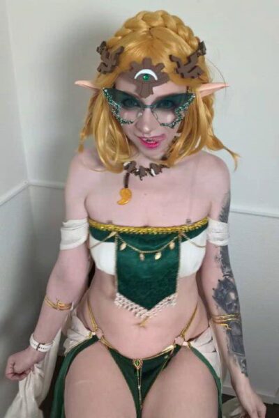 Skinny Blue Haired Elf Cosplayer Girl Masturbating On Camera