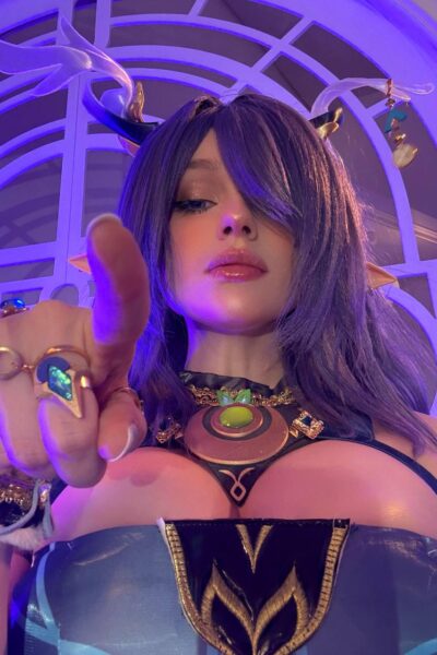 Bayonetta cosplayer rides cock sucks dildo gets cum shows off big tits
