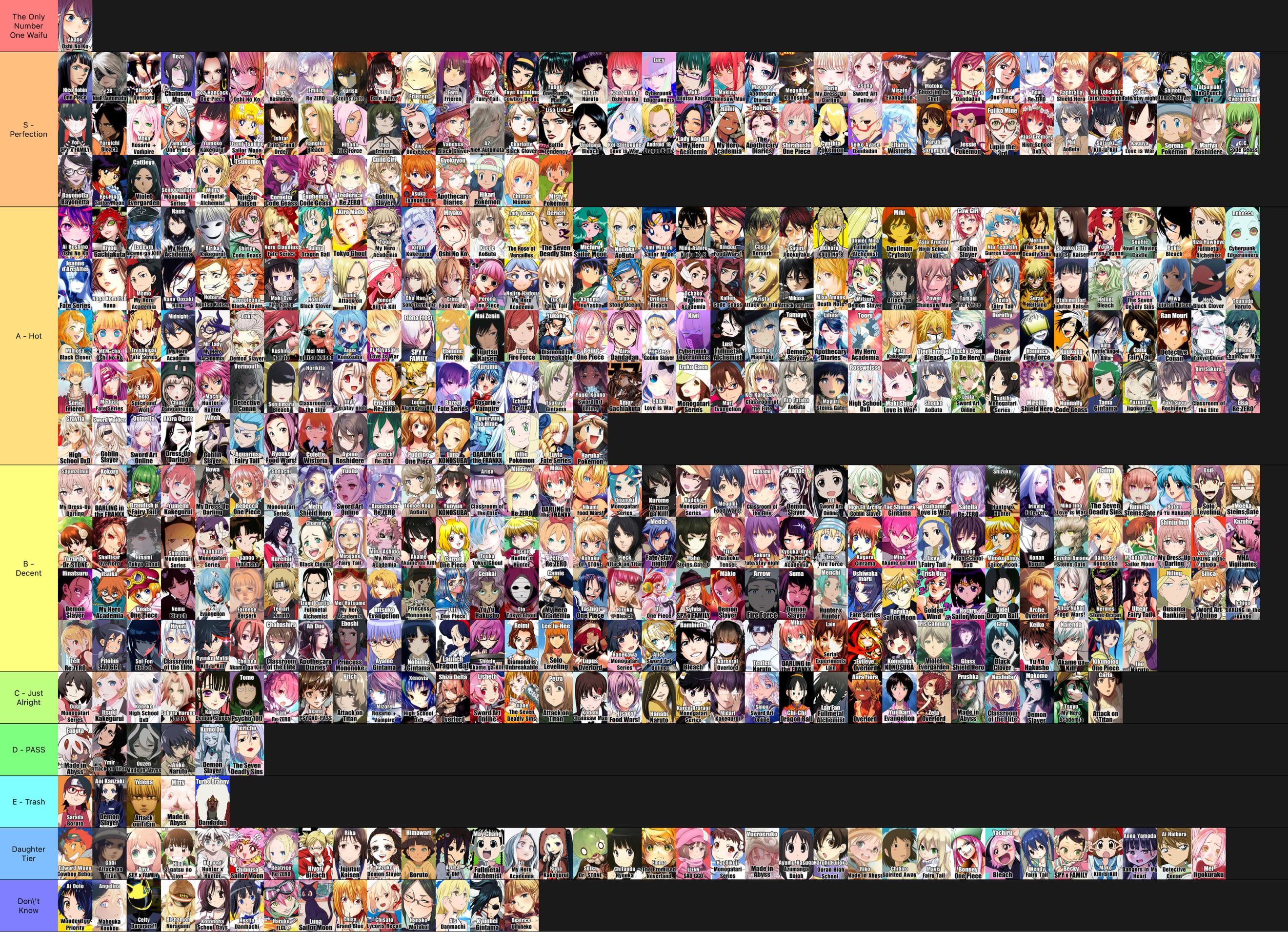 La mia personale tier list delle waifu degli anime completa dopo averla aggiornata