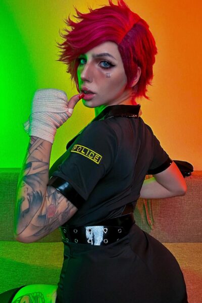 Tattooed Bulma cosplayer sucks dick and gets fucked in the ass