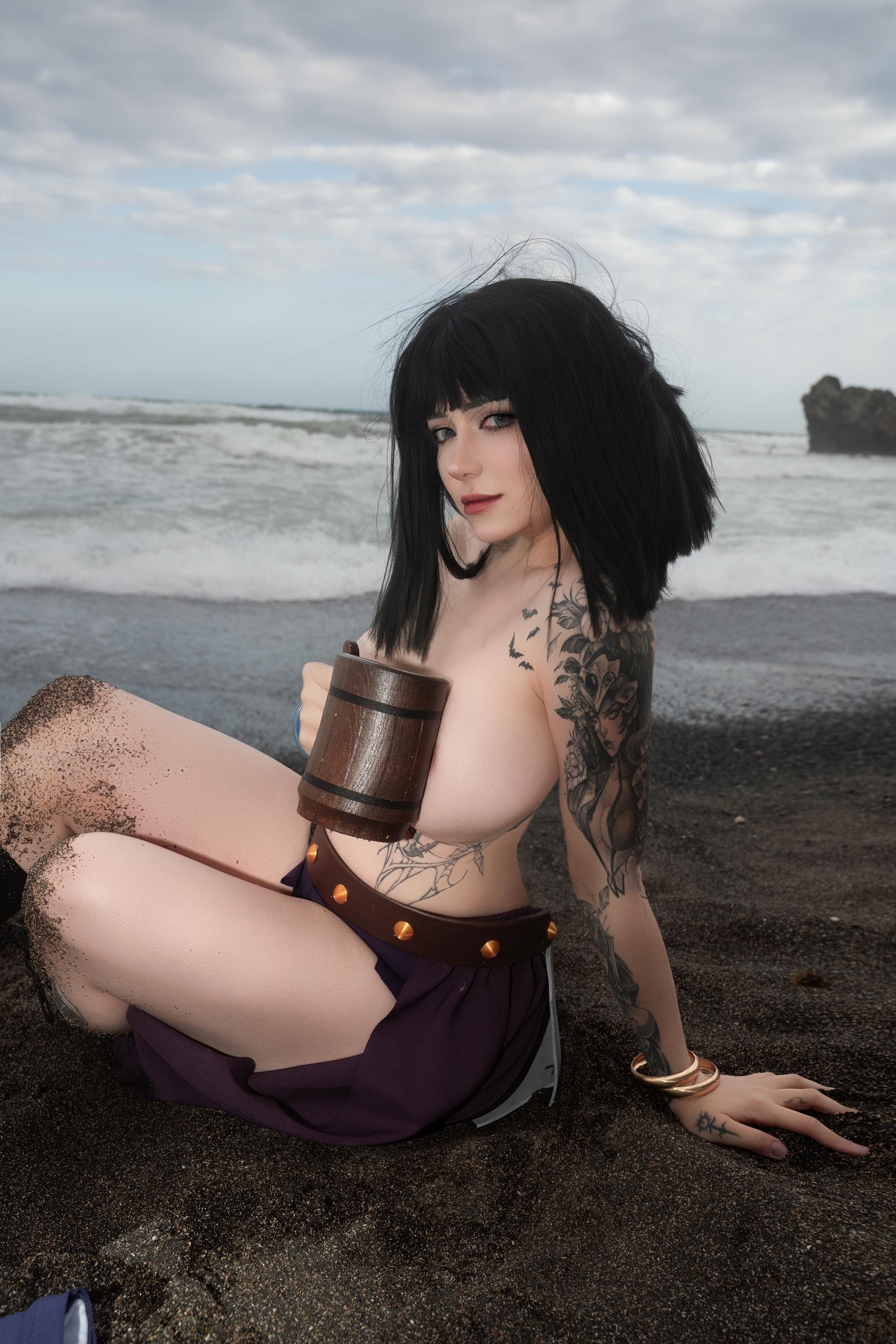 Nico Robin having some wine given to her by the Elbaff giants (Kuroitsne)