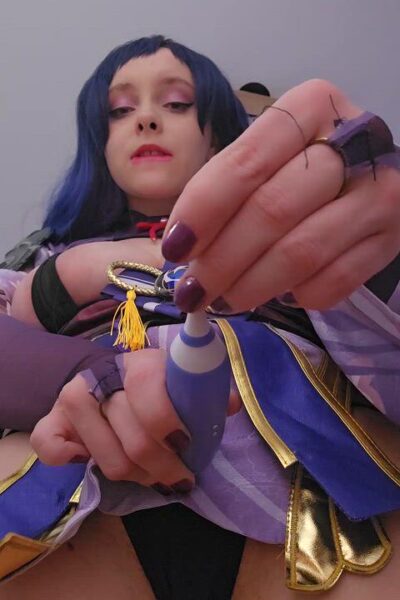 Chubby schoolgirl cosplayer bounces deep on dildo