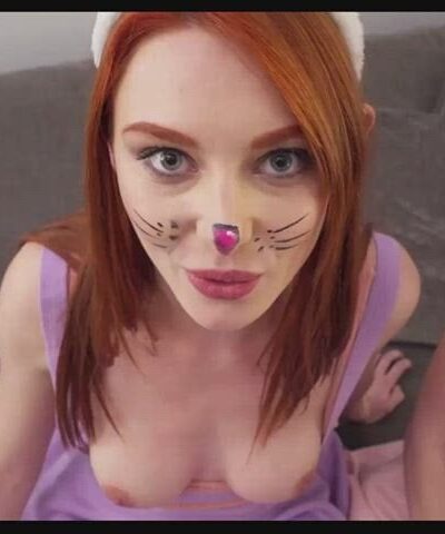 Neko girl cosplayer double penetrates herself with dildos