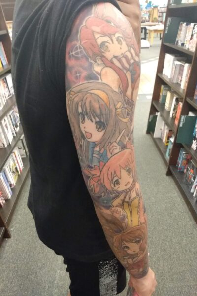 This one guy at a Barns & Nobel Book store showed me and my younger brother his Anime Waifu Tattoos, while i was looking at the Manga and Light Novel Books. Haruhi Suzumiya, Sound! Euphonium Kumiko Oumae Hibike! Euphonium, Gurren Lagann Yoko Littner, Madoka Magica Madoka Kaname. Anime Girls Rule!