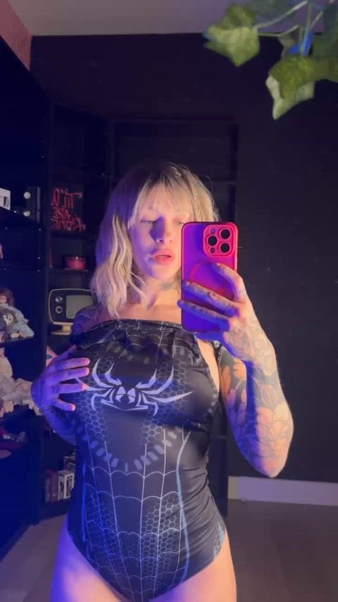 Spidergirl revealing her big juicy boobs